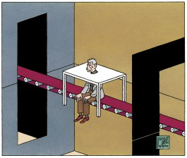 The illustrations for a literary piece are always the illustrator’s personal interpretation. They portray a certain vision on the work. Nescio has always been one of my favorite writers; he can tell so much with so few words. It was an honor for me to be able to illustrate four of his works. I was also responsible for the books’ design. The format, paper choice and typography give these works the feel of a series. I have also done illustrations for books by Raymond Queneau, Stefan Themerson, Daniil Charms, Lewis Carroll, Samuel Beckett, Haruki Murakami and David Sedaris.