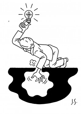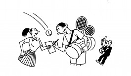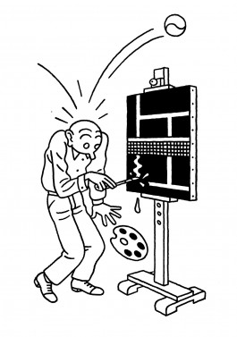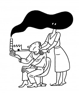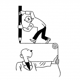 Every issue of The New Yorker includes eight small vignettes. Their purpose is to lighten up text-only pages. The vignettes may follow a theme, often connected to the issue’s subject matter. Sometimes the spots tell a story: a series of graphic pictograms that, combined, form a wordless comic strip.